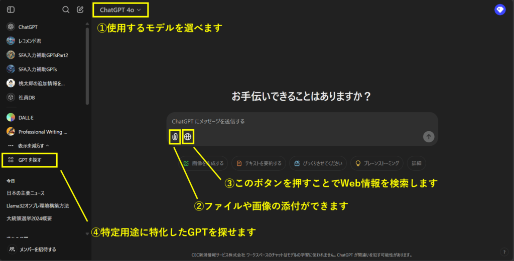 様々なデータを添付して質問したり、画像生成やデータ分析に活用したりできます。