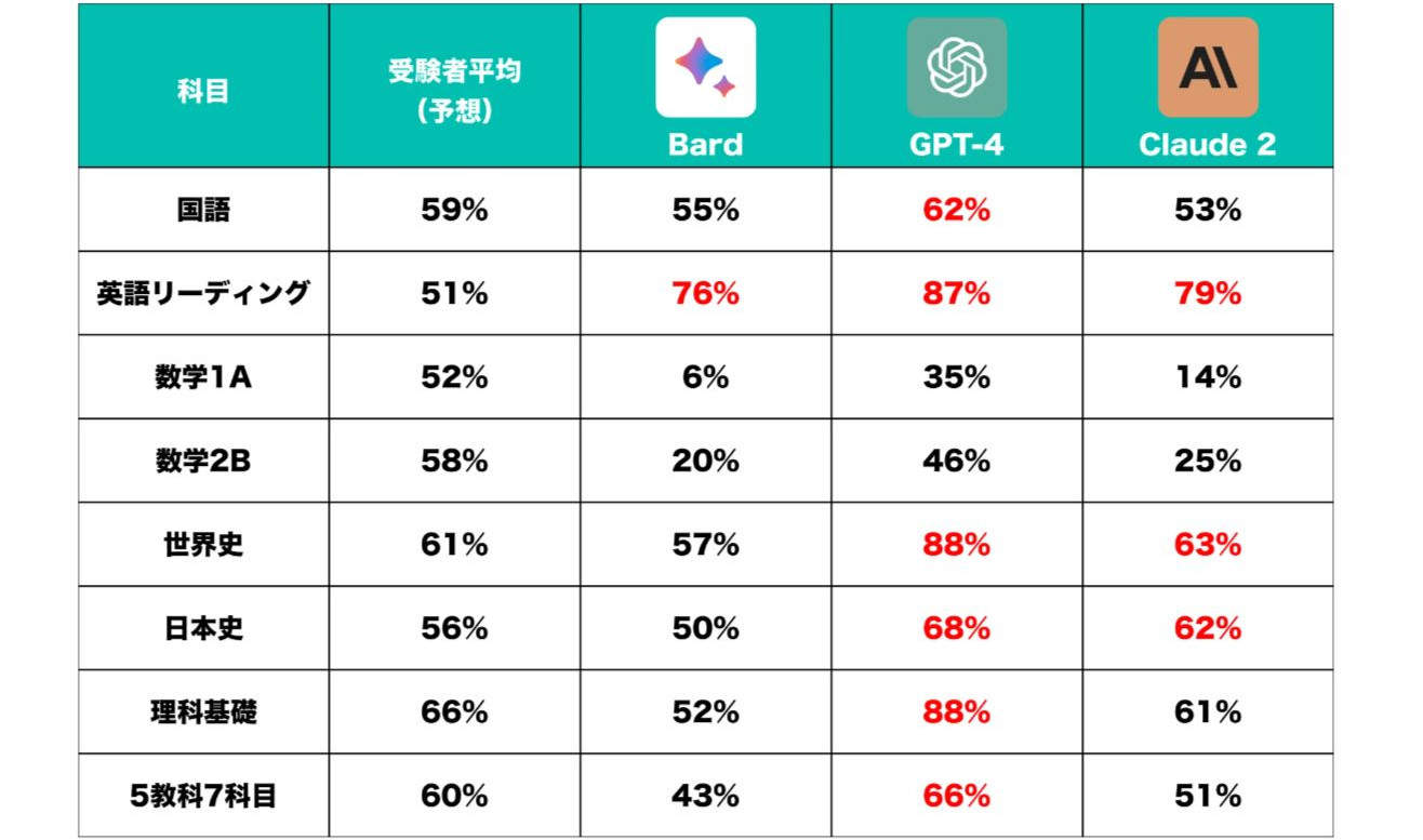 【2024年1月最新】共通テストを色んな生成AIに解かせてみた(ChatGPT vs Bard vs Claude2)|株式会社LifeP...