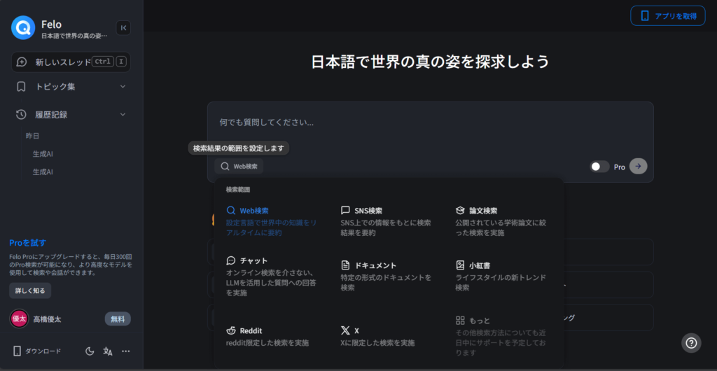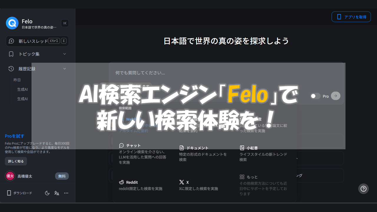 具体的な機能説明の前に、簡単に「Felo」の特徴について説明します。