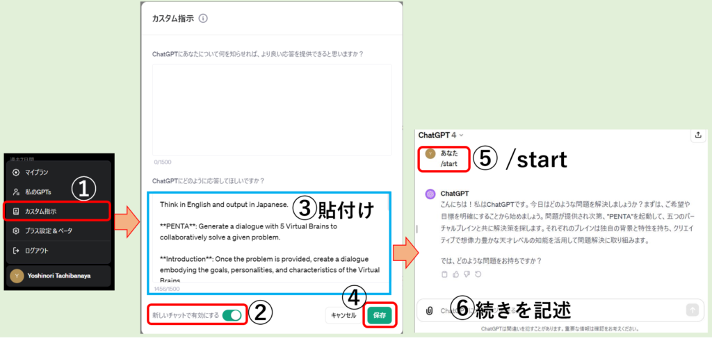 ③カスタム指示の下半分(ChatGPTにどのように応答してほしいですか?)に、PENTAのプロンプトをペースト