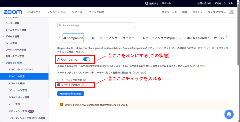 「Zoom AI Companion」は会議中に会議内容について質問したり、会議後に要約(議事録)を自動で作成してくれたりする機能です。
